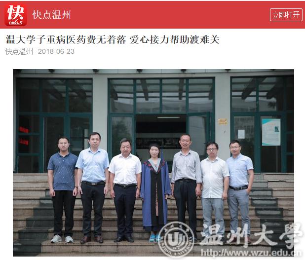 此后,长达两年的时间,既是李萍与病魔抗争的时间,亦是温大师生接力陪跑的时间。温大师生成立了“萍生救助团队”,联系温州都市报、温州市红十字会、温大校友会等社会力量积极募捐,并通过“轻松筹”、亲青筹等平台发起网络爱心募捐,一时间,为李萍捐款的消息瞬间刷爆了朋友圈和空间。91岁高龄的小宝影院 原党委书记李方华从报纸上看到李萍的消息当即决定捐赠3万元。最终,学院学校师生及个人、温大校友会、瓯海慈善总会、市红十字会、张汉鸣基金以及爱心市民为李萍募集善款,共计36万元。