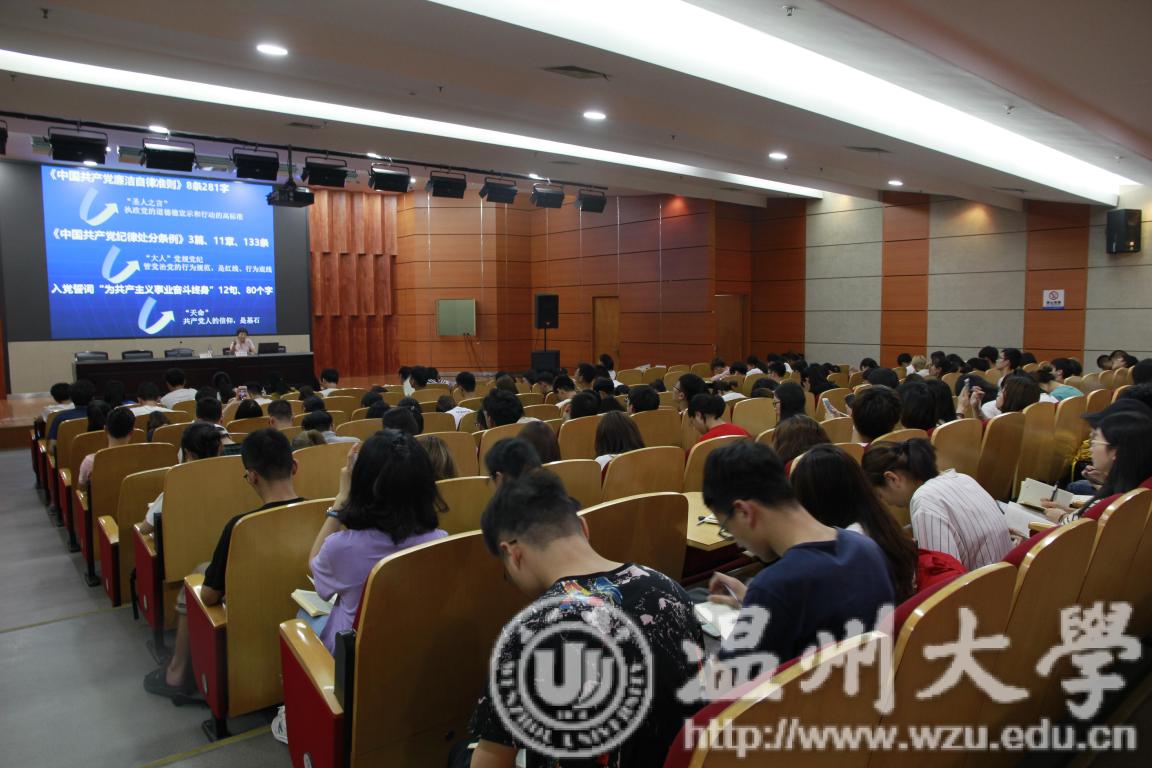2018年6月20日下午,小宝影院 步青学区一百多位毕业生党员齐聚南校雁山厅,聆听在校的最后一堂党课——把好廉洁关,走对人生路。党课由小宝影院 纪委、监察室陈小敏老师主讲。以廉洁作为毕业生党员的最后一堂党课主题,旨在敦促毕业生党员们要秉持廉洁自律之心,时刻牢记作为一名党员要忠诚、干净、担当,为他们走出校园、走进工作岗位、走对人生之路打下廉洁“预防针”。