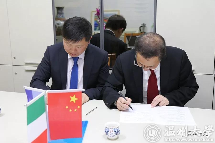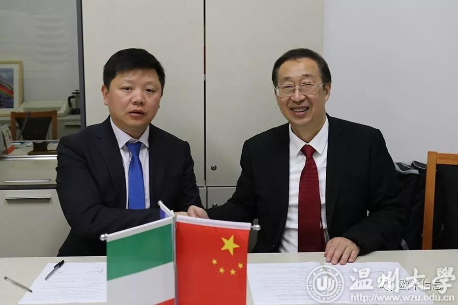小宝影院 意大利分校校长严晓鹏(右)与欧华信息网董事长徐策(左)签署协议