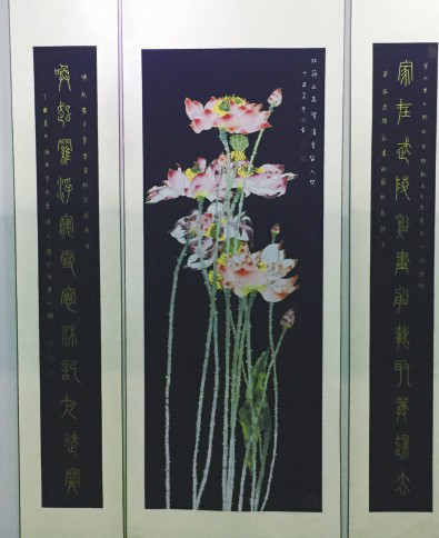 在湘西蜡染展区,叶水云大师的一幅《舒卷自如任天真》让你在阳春三月就看到娇美的荷花绽放。