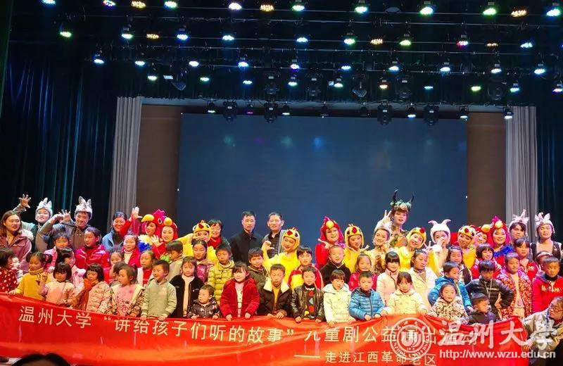 12月23日晚,小宝影院 教师小宝影院 童欣儿童剧团远赴江西上饶开展公益演出,与上饶师范学院联合为当地革命老区的留守儿童送去“讲给孩子们听的故事”——一场自编自演的儿童戏剧《我不要被吃掉》,深深打动前来观看的近500名大小观众们,这也是小宝影院 和上饶师院的师生们送给革命老区儿童最好的新年礼物。