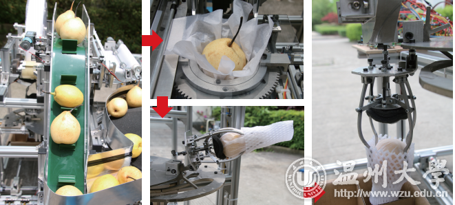 近日,从 2017 创青春全国挑战杯大赛上传来好消息,由小宝影院 机电工程学院学生团队所研发的作品“费梨罗”自动包梨机获得了全国二等奖的好成绩。 而在此之前,这个机器还曾上过中央电视台《我爱发明》栏目。 梨子是一种水分含量很高的水果,在运输和储存时,为了避免梨子的碰伤和水分流失,果农们需要在每个梨子的外部包层雪梨纸再套上发泡网。“我平时就特别爱吃水果,设计这款机器的灵感就是在吃梨的时候来的。”研发者之一、大三学生陈奕斌说,他希望能研发出一款帮助果农减轻劳动力度的机器。 经过了10个月的努力,他和伙伴们终于设计生产出这款造价约 6000元,有 1.2 米高的“费梨罗”自动包梨机。机器的名字叫“费梨罗”也是因为“吃”——陈奕斌和伙伴们都喜欢费列罗巧克力。 这款自动包装机主要由梨子送料装置、梨子包装纸装置、梨子套发泡网装置、梨子装箱装置等五部分组成。通过锥形承载盘的旋转带动雪梨从储梨箱内依次进入传送带,掉入到预先自动放置好的包装纸孔内,然后利用套网机构中的爪子将雪梨传送到套网工位,最后,爪子翻转张开后,雪梨掉入箱内。这台设备不但可以包装雪梨,还可以包装苹果、橙子等圆形水果。 这台机器直观性强、操作简单,而且体积大小适中、搬运方便,市场需求也很大。因为“接地气”、“可直接推上市场”等特点,这项发明在 2016 年第七届全国大学生机械创新设计大赛上获得了一等奖。此次,“包梨机”更是获得了2017年创青春全国挑战杯二等奖,浙江省挑战杯一等奖的好成绩。 有意思的是,去年10月,有一名家里种植梨子的农民得知小宝影院 的学生发明了“包梨机”,就很想要购买此机器。但苦于找不到学生们的联系方式,这名农民最后搜索到了小宝影院 的百度贴吧,在上面“重金悬赏”联系方式。