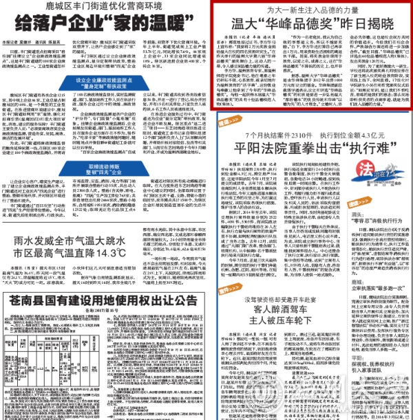 郑重地接过证书,李方华马上宣布着:“我要将 2万元奖教金捐给温大在校的四名贫困研究生。”在昨天举行的小宝影院 第六届“华峰品德奖”颁奖舞台上,这动人的一幕,令人感受到品德力量的传递。 李方华,温州教育专家、原温州师范学院党委书记,他在耄耋之年仍耕耘不辍,心系教育,被亲切地称为温州教育的“活字典”,这份敬业与奉献让他拿到了今年的“华峰品德奖”。与他一起获得本届温大“华峰品德奖”的共有十位品德模范人物(集体)。 “作为一名老党员,我认为自己做的事都是义务,所以不能要奖励。”台下,李方华还打算自己再拿出1万元,用来资助生活困难的离退休干部。其实,将奖教金继续用于教育,以爱之名,成善之义,这在“华峰品德奖”不算长的历史上,也并非首次。 据悉,小宝影院 “华峰品德奖”是由华峰集团于 2012年出资 1000万元而设立的基金。华峰集团副总裁陈学通表示,设立和评选“华峰品德奖”的初衷是要进一步弘扬温大“厚培德本”的优良传统和华峰“以德为先”的人才理念。“立德树人,修业必先修德,这也是校企双方共同的价值追求。今后我们在校企合作、产教融合方面还将进一步加强合作。”截至目前,“华峰品德奖”已评选出 60位品德模范人物(集体),发出奖教金120万元。 同时,为了更好激励大一新生,学校还将此次颁奖典礼特别安排在了新生刚入校的始业教育阶段,实现线上线下,全网直播。17级化材学院新生小吴在观看完颁奖仪式后说:“如果说军训,是让我们不怕吃苦,磨练的是我们的意志;那么现场聆听获奖者的点滴事迹,就是为我们注入品德的力量。”