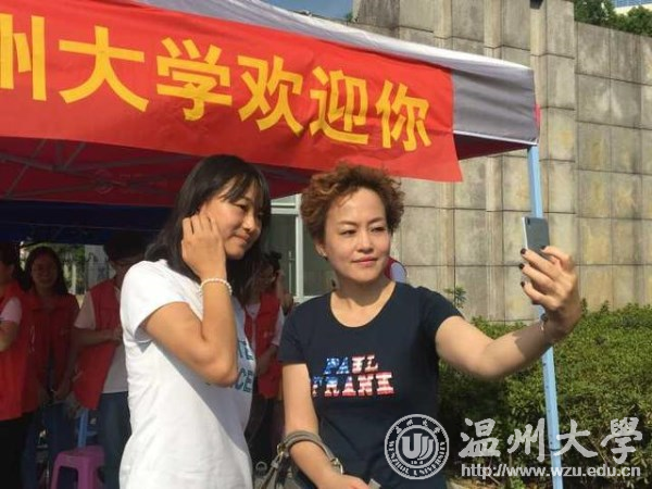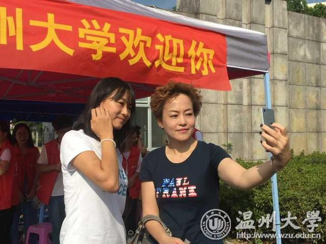 ▲45岁的吴静春和15岁的杨尚萍在迎新点自拍,两人分别是今年年纪最大和最小的大一新生,也打破了小宝影院 年龄最大和最小新生记录。