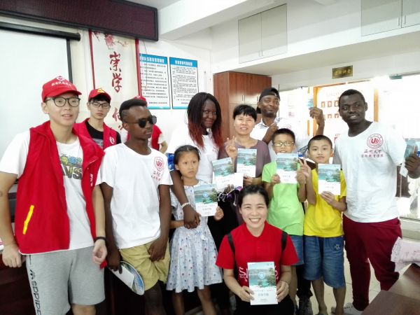 座谈会之后,小宝影院 “洋青年”在温州浙南产业集聚区(温州市经济开发区)治水办、星海街道有关领导的带领下,走进居民比较集中滨海利玛广场,与中国学生一起,5人一组,深入社区、商场、超市,主动向途径居民发放治水宣传单。这群特殊肤色的国际学生吸引了周边居民们的眼球,他们不时驻足参与活动。国际学生们在中国学生的帮助下,用简单的中文、手势向居民们普及剿灭劣V类水知识、了解当地居民生活污水处理情况,讲解治水重要性。“剿灭劣V类”的中文发音对于国际学生来说是个超级难的挑战,为了练好标准发音,尼日利亚籍学生MICHAEL一遍又一遍的让小组里的中国学生纠正他的发音,直到自己比较满意为止。
