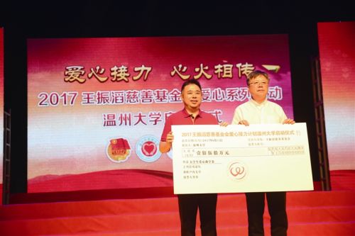 5月31日,2017年王振滔慈善基金会“爱心接力计划”首站在温州医科大学启动,该基金会出资150万元,资助温州医科大学300名学子圆梦;6月7日,王振滔慈善基金会“爱心接力计划”在中国传媒大学启动,该基金会出资150万元,资助中国传媒大学300名学子圆梦,这也是该基金会成立十年来,首次走进首都高校。