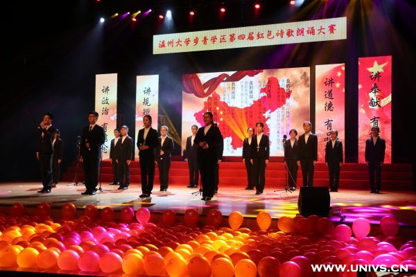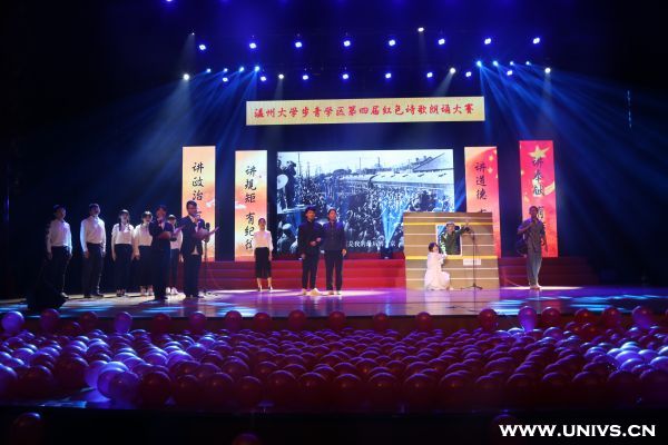 比赛现场,一篇篇充满激情的经典诗歌在同学们的朗诵中得以呈现,节目精彩纷呈,创意激情无限。如《这是四点零八分的北京》运用情景模式,在舞台上搭建了火车站台,从离别的哀伤中诉说对祖国的恋恋不舍;《翻开五月的日历》运用红色舞蹈搭配诗歌朗诵,用激昂高亢的声响诵出青春的自豪;《相信未来》用书法和朗诵诵出青春的答案。
