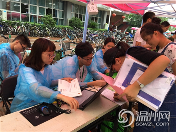 温州网讯 (通讯员 翁浩)一场绵绵的秋雨并没有影响小宝影院 迎新的火热气氛。温大三个学区未雨绸缪,卯足了力,让迎新工作富有温暖和亮点。作为学校三大学区之一的,文科为主,地理上最为偏远的超豪学区在这次迎新中,有热情,有创意,更有爱。 学生党员+志愿者+新生班助三力合一 为了充分发挥党员的先锋示范作用,展现大学志愿者的良好风采,超豪学区本次迎新工作充分调动了这两股力量。 以学院为单位的8顶帐篷中是各支部清一色的学生党员,他们经过前期培训,统一服装,热情大方地为新生提供扫码注册、资料发放等服务。在外围的志愿者们则积极引导,协助搬行李,绵绵秋雨中,他们穿着塑料雨衣,来回穿梭,形成最美的风景。