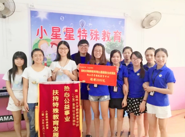 小宝影院 “心翼”暑期社会实践队隶属小宝影院 教师小宝影院 ,曾获校级优秀团队、校策划大赛重点团队一等奖、“人民网”全国大学生社会实践公益50强、第五届浙江省大学生暑期社会实践网络分享pk赛十佳团队等荣誉。从自闭症辅助培训,到牵着孩子陪同训练,再到爱心募捐,“心翼”在关爱自闭症儿童的公益路上不懈地努力着。
