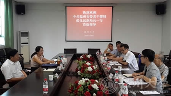 近日,中共温州市委老干部局副局长张化远一行来小宝影院 调研督查老干部工作,并与小宝影院 相关人员进行了座谈交流。副校长方益权、原离退休党支部书记李方华、离退休协会会长潘成安、离退休协会副会长陈维新,老干部工作部、人事处负责人等参加座谈会。