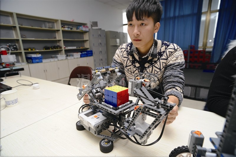 上大学后,他从学校买来零件,自己编程并组装,前后做了十几个机器人,包括投篮机器人、魔方机器人等。听说步青学区里的美女教师靳颖最近要办婚礼,他便萌生出要为老师制作一个“送戒指机器人”的想法。