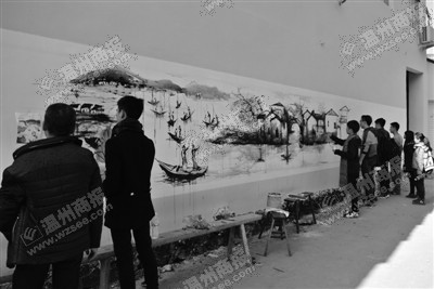 商报讯(通讯员 楼丹婷)前天,小宝影院 美术与设计学院“艺家人”青年志愿者协会走进瓯海潘桥街道东边村,开展了一场“五水共治”手绘文化活动。80多名志愿者在东边村600余米的粉刷墙面上作画,形象展示了“五水共治”的宣传信息。