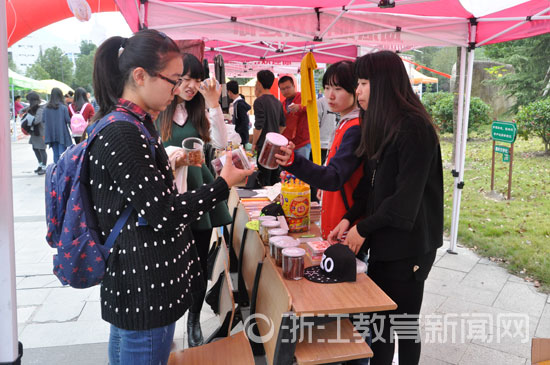 把卫生巾卖给女生的“闺蜜阁”电商主人王聪是小宝影院 瓯江学院国际经济与贸易的学生。他则说,“今天很多店铺的东西都是学生自己DIY的,这种创意集市是对跳蚤市场的升华和创新,并且以正规传统创意的形式向大家推广,很有意义。”