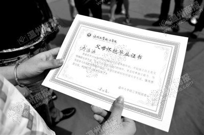 在小宝影院 瓯江学院,几位新生手捧“父母怀抱毕业证书”合影留念。“我们希望新生来到温大后,能够离开父母的怀抱,开始独立生活。”该学院辅导员温长秋说,一份证书仅仅是形式,还需要这些大一新生在今后生活中学会真正的独立。