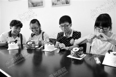 昨天,温大新生报到日也是4位大一新生的生日。下午1时,4位“寿星”被邀请到学区办公室内。不一会儿,几名学长学姐捧着蛋糕,唱着生日歌步入办公室内。 相关链接://news.hexun.com/2014-09-19/168625738.html