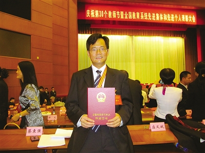 9月9日,我参加了在京举行的“庆祝第三十个教师节暨全国教育系统先进集体和先进个人表彰大会”,并作为高等教育国家级教学成果奖一等奖获得者代表接受表彰,真是很激动。