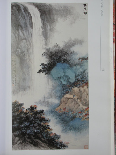 在民国海上画界,吴湖帆已属保守派,将之归为本章,实因文中提及他所画的百丈漈与大龙湫,出自其五、六十年代的手笔。湖帆山水画经过早期广泛博览与研习,特别在四十一岁任故宫博物院审查委员后,所见宋元名迹益多,眼界更非“四王”与董其昌所能拘囿。画风独树一帜,趋向综合,南北宗兼修,灵秀雅腴、清逸缜丽,熔水墨洪染与青绿设色于一体。“时又与摄影家郎静山相往还,郎氏所摄风景故多画意,湖帆因之别有会心。自是拈毫作画,每转光影为笔墨,是亦吴画新颖善变之一端。”[6]湖帆之画因此有了层光影绰约之美,如《云表奇峰》、《黄山松云》等名作皆如是。