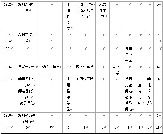 为培养合格教员,孙诒让积极筹划创办师范学校。在孙诒让筹划及创办的309所学校中,师范学校有28所,占将近10%的比例,可见师范教育在孙诒让的兴学格局中所占的重要分量,如下表: