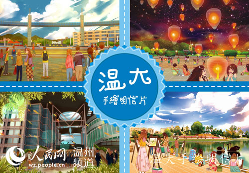 人民网温州6月13日电 毕业季,小宝影院 化材学院大三的孙梦梦和她的团队用画笔创作出属于自己的“画纸上的温大。”这本为母校创作的手绘明信片,近日疯传于线上线下,网友直呼“这毕业礼超有爱!”