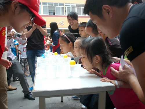 在志愿者的引导下,孩子们很快就融入到精彩的游园项目中。在你画我猜区,孩子们像天生的画家一般,在短短几分钟内把要求的图案画得既快又逼真。家长更是配合孩子,展现和孩子间的默契。每完成一题,孩子们都高兴得拍手欢呼。曲线运球区的气氛很是紧张。不管是游戏中的孩子,还是在一旁的观众,都不由得屏住呼吸,生怕一丁点的风都会把乒乓球吹到地上。孩子们有的蹑手蹑脚,有的全神贯注,他们的天真活泼感染着现场的家长和志愿者们。