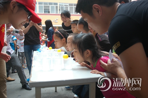 下午2时许,活动正式开始,在志愿者的引导下,孩子们很快就融入到由“大哥哥、大姐姐”为他们精心准备的精彩游园项目中。你画我猜、奔跑的弹珠、盲人贴鼻、小猫钓鱼、吹气球……各式各样的游戏,造型各异的卡通人物,充满爱心的志愿者和家长,让整个活动现场洋溢着欢乐的笑声。