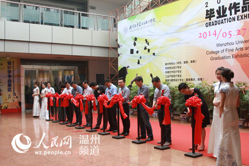 人民网温州5月27日电 今天上午,小宝影院 美术与设计学院2014届毕业作品展在温州市展览馆开展。本次共展出创作作品65幅、设计作品200余件,即日起至6月5日,市民均可前往参观。