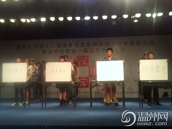 温州网?教育讯(通讯员 曾蓓蕾)5月19日晚,小宝影院 第十二届“百年语文”系列活动之汉字英雄决赛在小宝影院 南校区行政楼演播厅隆重举行。来自温大9个不同学院的20名选手从初赛200多名选手中成功晋级进入决赛。