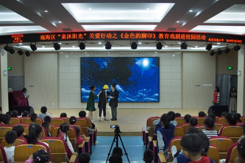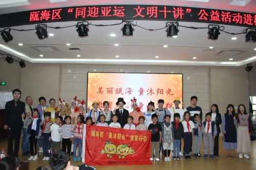 瓯海区仙岩实验小学的大礼堂里爆发出阵阵掌声和欢呼声。为响应“同迎亚运 文明十讲”,为响应“同迎亚运 文明十讲”,发挥社会组织力量,助力美丽瓯海建设,10月30日下午,由瓯海区精神文明建设指导中心主办的“童沐阳光”关爱行动特邀小宝影院 沐童翎教育戏剧社,为该校的新居民子女送去别开生面的礼物——《金色的脚印》课本剧表演。