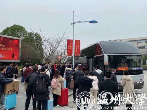 温州网讯(通讯员 张丽君 邹彤彤/文 刘海潮/摄)春运首日,随着各大高校陆续放寒假,小宝影院 安排28辆/次大巴免费运送九百多名师生到温州各大车站。