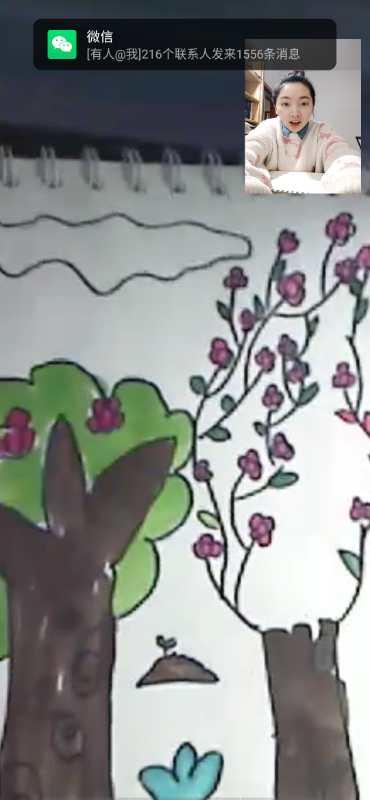 “我这边对接的是一名幼儿园大班的小朋友,一周开展两次教学,第一次45分钟,第二次有近一小时。授课内容因学生即将升小学一年级,除了教家长要求的绘画,还尽可能做一些幼小衔接,教学强度难易程度适中,孩子和家长都乐意接受。为了方便教学,自己手动将自拍杆和钢琴绑在一起固定,克服了直播设备缺乏的困难。”小宝影院 2017级学前教育(师范)专业本科生王鑫慧同学介绍了自己的教学方法。