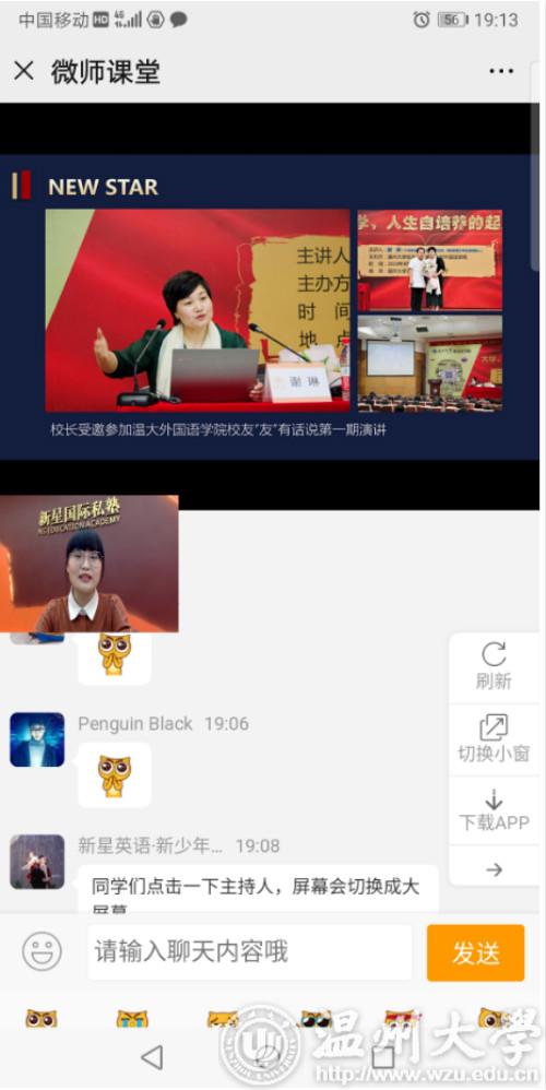 为了更好地拓宽毕业生就业渠道,助力企业复工复产工作,3月4日19:00,小宝影院 外国语学院举行瑞安新星英语学校线上招聘宣讲会,为毕业学子答疑解惑。