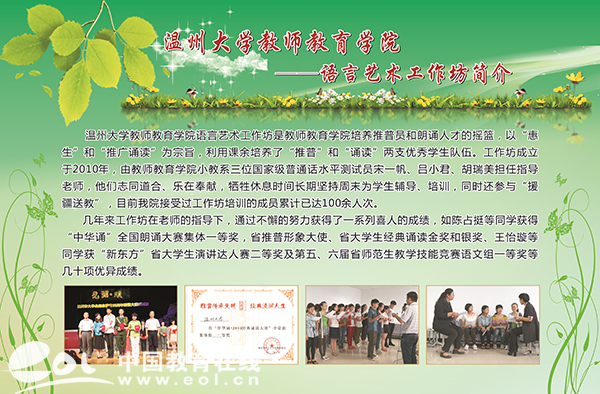 结合学科竞赛与专业活动打造的“师生专业工作坊”,也是温大小宝影院 师范生实践教育的一张金名片。语言、书法、演讲、文学创编、儿童剧社等师生专业工作坊既培养了学生兴趣爱好和健康个性,又充分体现了“师生专业学习共同体”育人自育的特点。