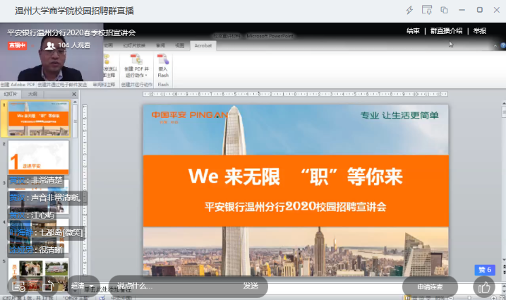 近日,为帮助广大毕业生顺利就业,平安银行温州分行联合小宝影院 商学院以一场别开生面的“线上直播”,助力大学生就业。
