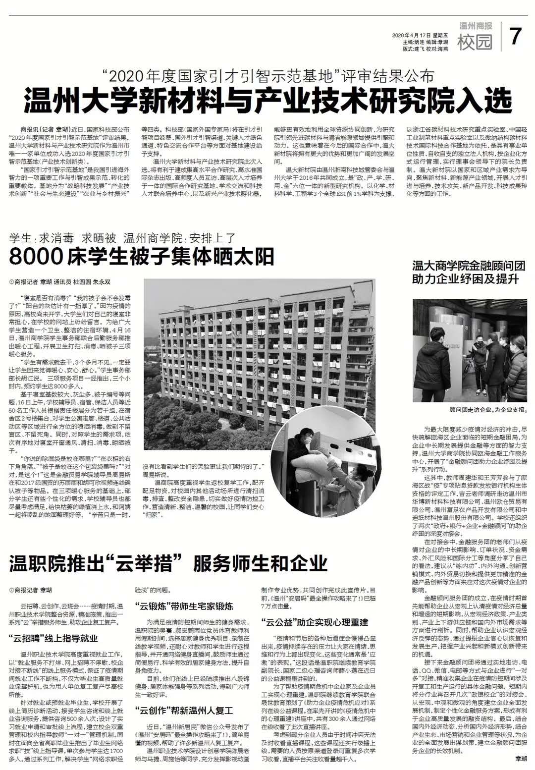 商报讯(记者 章瑚)近日,国家科技部公布“2020年度国家引才引智示范基地”评审结果,小宝影院 新材料与产业技术研究院作为温州市唯一一家单位成功入选2020年度国家引才引智示范基地(产业技术创新类)。