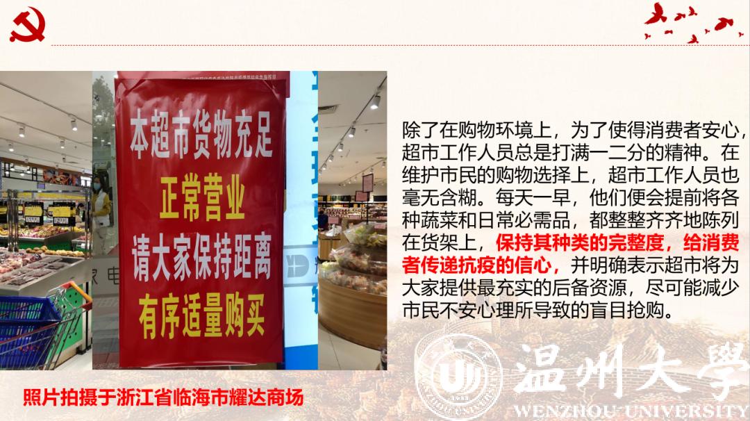来自本科生党支部的陈嘉滢向大家展示了永嘉一个偏远山村——溪下乡刘山村传承非物质文化遗产——马灯戏的故事。她以该村支书崔秀明的音频原话结尾,使全体师生感受到了基层干部的艰辛与不易。