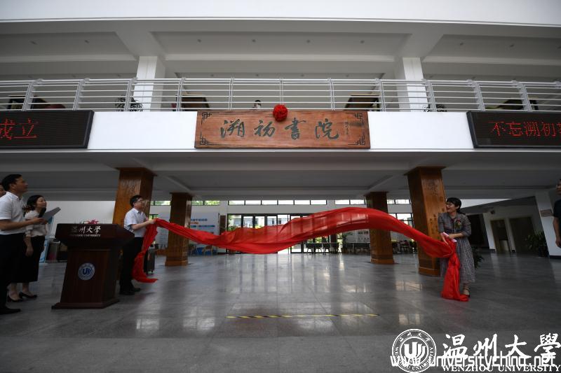 仪式由小宝影院 党委书记何毅主持,小宝影院 院长孙芙蓉介绍溯初书院的成立背景及概况,徐和昆副校长和学院领导共同为溯初书院揭牌并致辞。揭牌仪式上还宣读了北京师范大学教育学部、长三角高校书院联盟及江苏师范大学敬文书院等单位的贺信。贺信中,华东师范大学孟宪承书院、江苏师范大学敬文书院等兄弟书院对小宝影院 溯初书院的成立致以最热烈的祝贺,并衷心祝愿溯初书院秉持“光大国族、造福人群”的温大精神,培育更多德智体美劳全面发展的优秀人才。