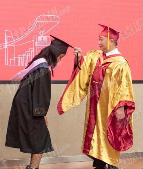 隆重的学位授予仪式上,赵敏为毕业生代表们颁发学位证书,并一一正冠、拨穗合影。稻穗的成熟代表着学有所成,从左到右,拔去的是大学的稚嫩与过往,拨来的是温大给每位学子的份份祝福与牵挂。