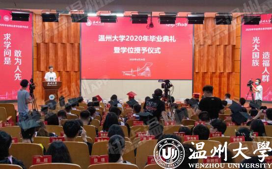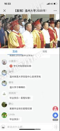 “东海水,雁荡山,我温大精神,浩浩宕宕……”师生们齐唱校歌,忆往昔朝气蓬勃,望明日繁花似锦。此次毕业典礼还同步进行了网络直播,截止发稿,近8万人次在线观看参与了毕业典礼。