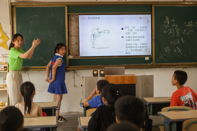图为孔佳佳老师带领孩子进行情景表演(方彦摄)