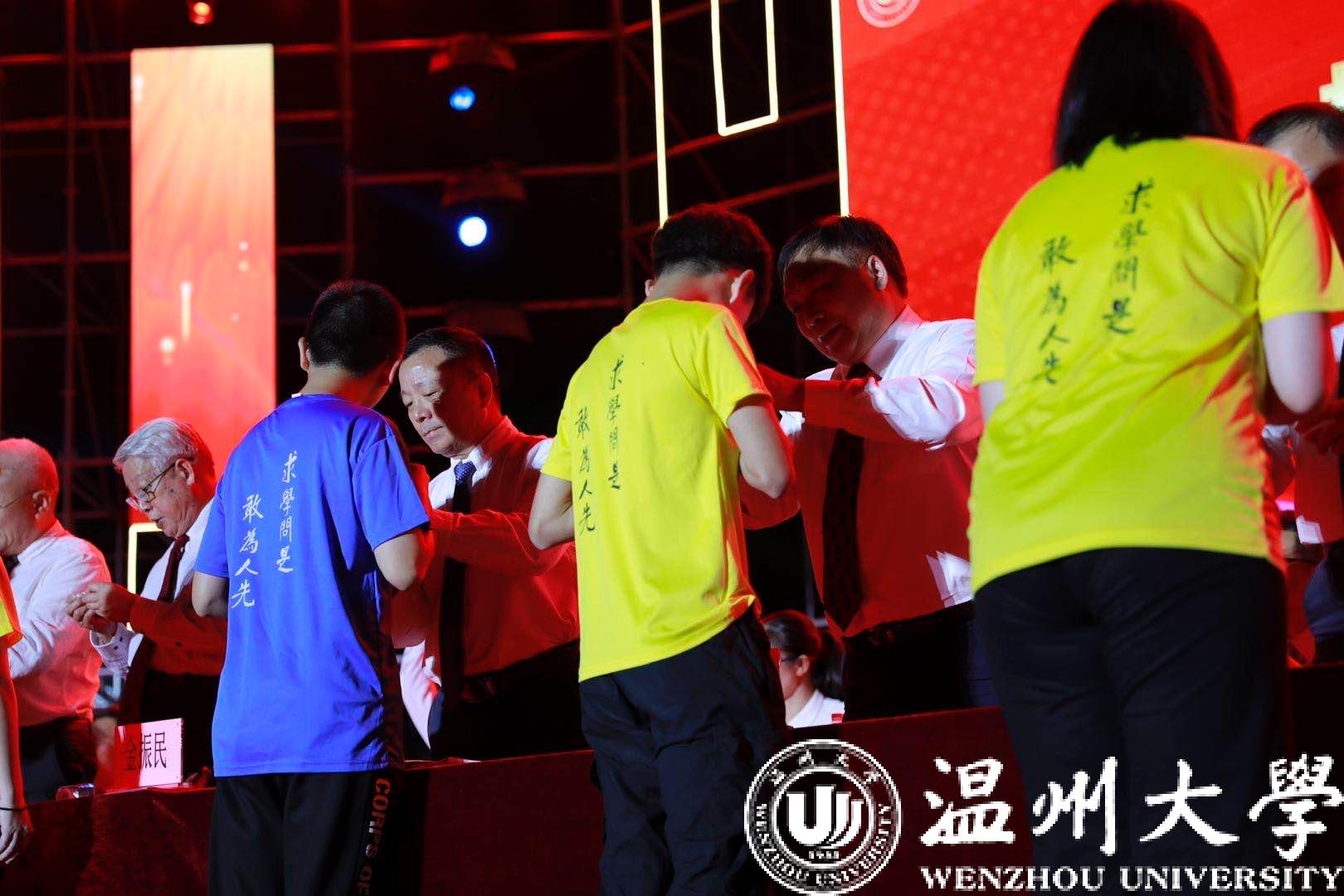 伴随着庄严的乐曲声,校领导为新生代表佩戴小宝影院 校徽。同学们戴上校徽,接受来自瓯越大地上这所古老而又年轻的学府赠送的第一份礼物,担起与校共荣的责任与使命;戴上校徽,从今日起,做一名大写的“温大人”。
