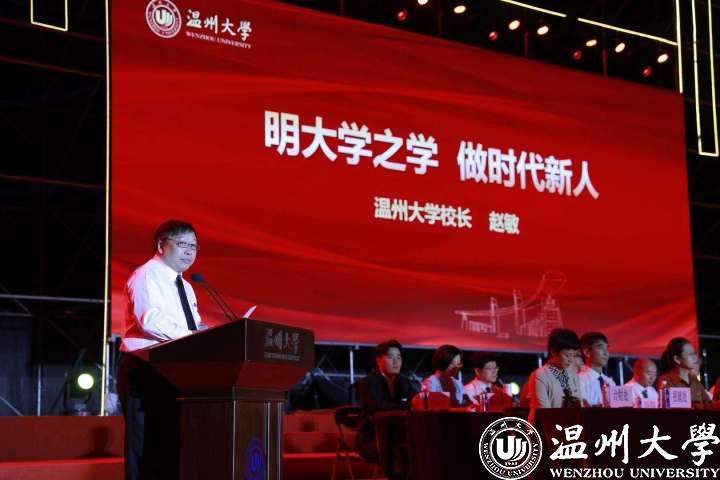作为同学们成长成才的筑梦者和摆渡人,教师代表——人文学院的张真老师和新生们分享了求学生涯中三个生动的故事,以此鼓励大家要永远怀有梦想、永远心守信念、永远拥抱情怀,在温大书写人生新的华章。