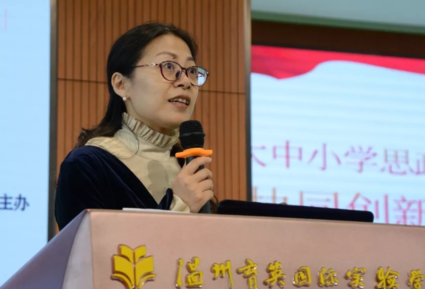 温州育英国际实验学校政治组教研组长姚丛艳做了《新教材落地中备课组思考与实践》专题讲座,从“困惑——解惑”、“做势——做事”的角度,阐述了在新教材教学过程中的探索实践,激起一线教师共鸣。
