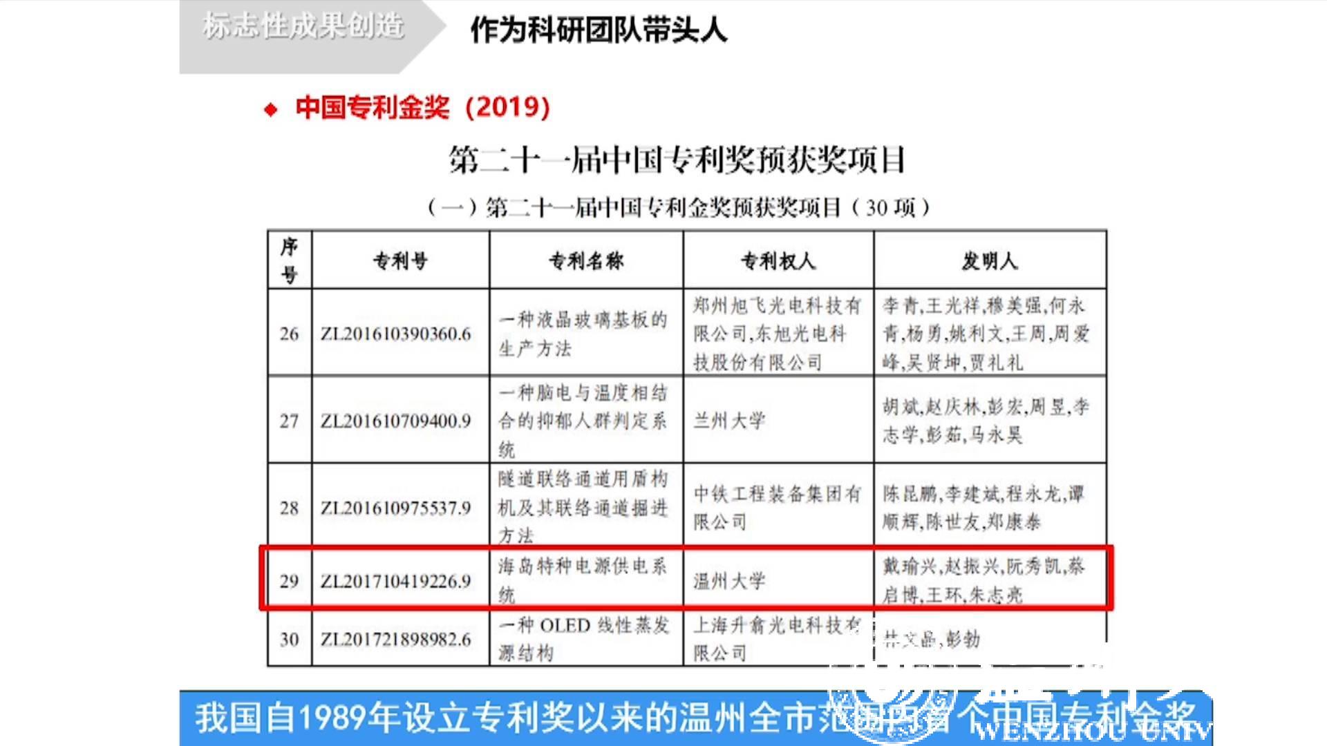 2019年,小宝影院 凭借“海岛特种电源供电系统”获得第二十一届中国专利金奖,成为我市历史上首个国家级专利金奖,也是这次我省仅有的两个金奖项目之一,该成果填补了国内海岸工程兆瓦级特种交流电源关键技术空白,达到国际领先水平。