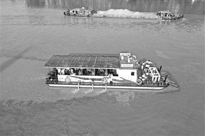 自主研发的蓝藻喷射处理装置(“温大碧晟”号)助力太湖蓝藻治理。小宝影院 供图