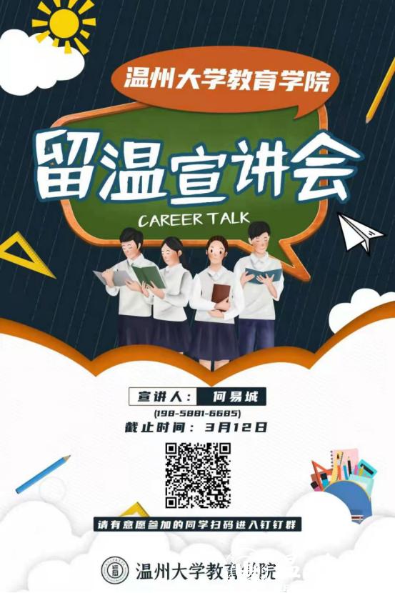 秋千基业,人才为本。今天是3月12日植树节,同时也是首个“温州人才日”,大学生是国家的希望和未来,在刚刚结束的全国两会上,李克强总理33次提到就业问题。一直以来,学生职业生涯以及升学发展都是学校重点建设的方向。为吸引更多大学生留温就业,逐梦未来,小宝影院 开展留温政策宣讲会。