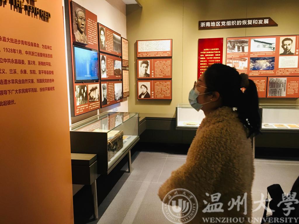 3月21日上午,永嘉县五漱乡五漱村中国工农红军第十三军军部旧址就来了这样一群年轻人,他们参观了红十三军军部旧址,用相机拍下当年红十三军开作战会议使用的长板凳、书桌等陈设,用笔详细记录胡公冕、金贯真、陈文杰等烈士感人至深的英雄事迹,在参观人群中显得格外认真。