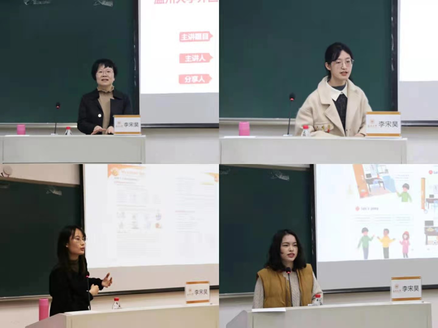 同日晚,李宋昊老师带领应烁妮、盛鼎鼎、陈紫薇为同学们重现了考编试课与面试情景,并分享了求职应聘的途径与经验。