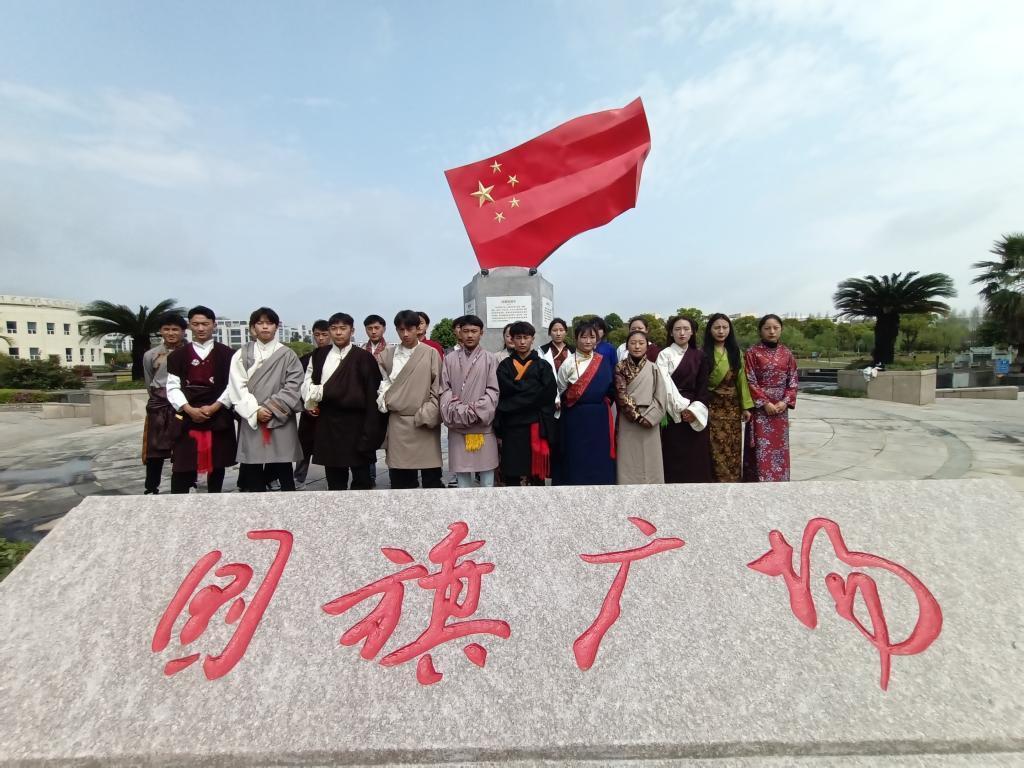 3月28日上午九时许,西藏籍少数民族同学们身着民族盛装,在国旗广场与五星红旗合影留念,在国旗前齐声合唱《翻身农奴把歌唱》。那一句句清朗的歌声,那随风而动的舞姿,无不诉说着学生们心中对祖国母亲最深情的告白!