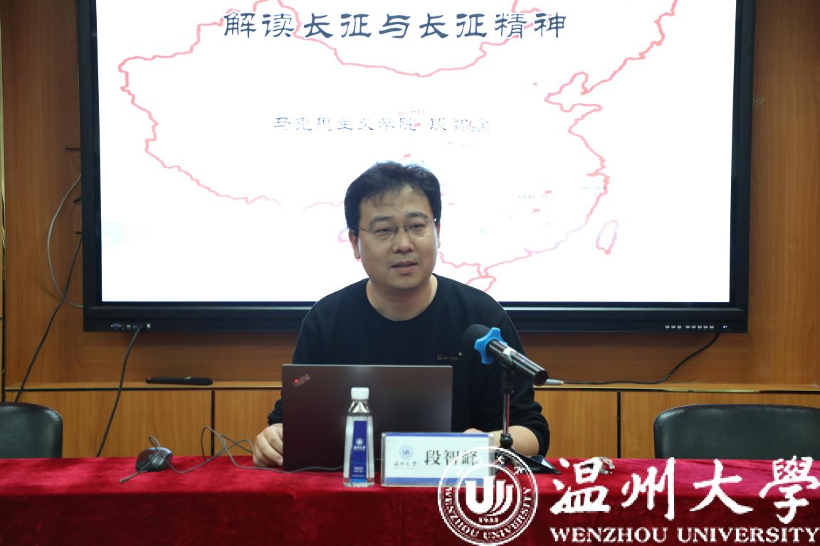动员部署会后,马克思主义学院博士、温大党史学习教育讲师团成员段智峰以《长征与长征精神》为题作专题讲座,段智峰博士从长征的概念、长征的原因、长征的历程、长征的意义与启示四个部分,用叙事的方式将丰富翔实的历史材料娓娓道来。段智峰最后强调开展党史学习教育意义重大,希望大家通过学习党史传承优秀传统,走好新时代的长征路。