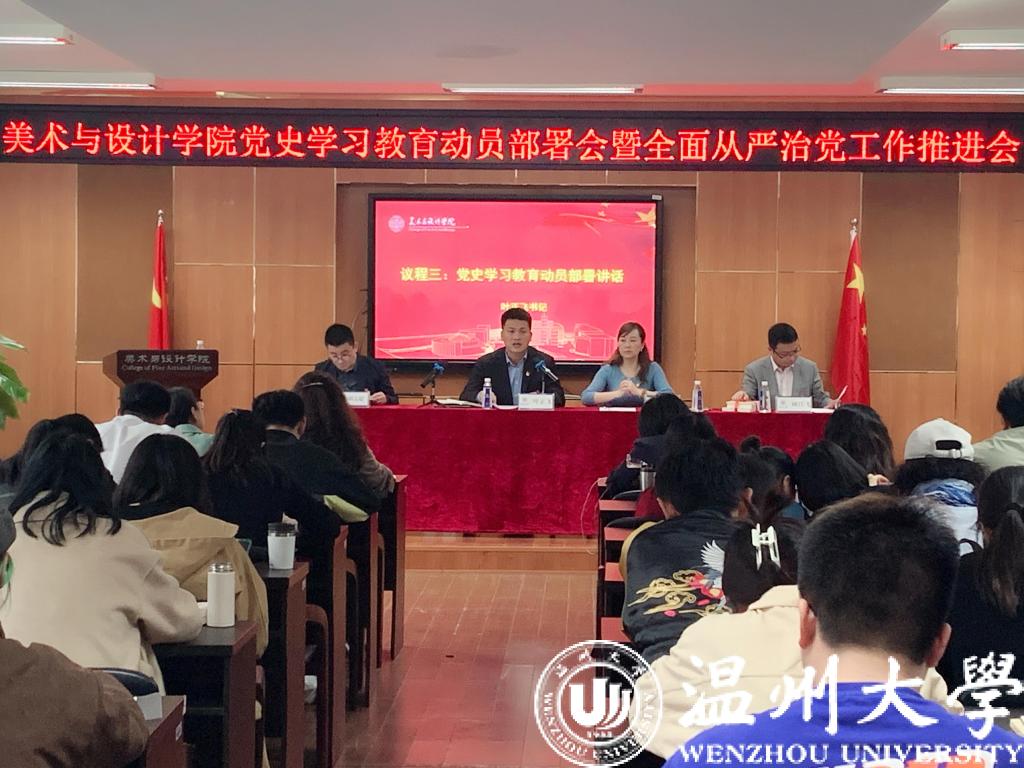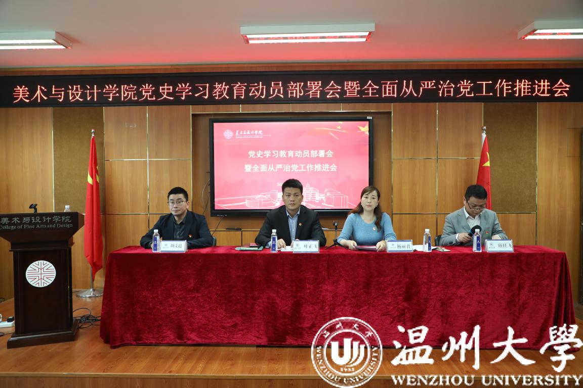3月31日下午,小宝影院 美术与设计学院召开党史学习教育动员部署会暨全面从严治党工作推进会,贯彻落实学校党史学习教育动员大会工作部署,传达学校2021年全面从严治党暨“清廉温大”建设会会议精神。学院党委委员、纪委委员、全体党员师生参加会议,学院党委书记叶正飞作动员部署,党委副书记杨丽君主持会议。